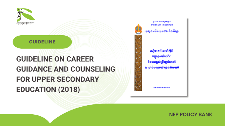 This guideline was developed as part of Cambodia’s education reform efforts to strengthen career guidance services in upper secondary schools. It provides a structured framework to help students explore their academic interests, identify career paths, and prepare for life after…