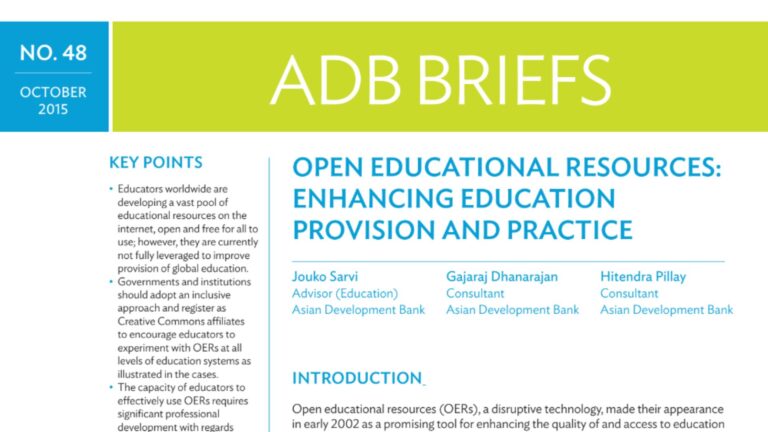 ADB Briefs – Open Educational Resources: Enhancing Education Provision and Practice