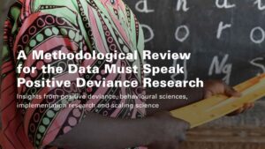 This methodological review aims to gather, in one place, a wide variety of studies to provide guidance on best practices and lessons learned from posi- tive deviance, behavioural sciences, implementa- tion research, and scaling science methodologies and approaches. It offers a common reference and standard language for the Data Must Speak (DMS) Positive Deviance Research and provides guidance for its application at the country level.