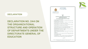 On January 28, 2025, Declaration No. 244 was issued, establishing the organizational structure and operation of departments under the Directorate General of Education of the Ministry of Education, Youth, and Sport.