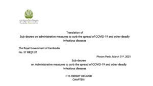 Translation of Sub-decree on administrative measures to curb the spread of COVID-19 and other deadly infectious diseases